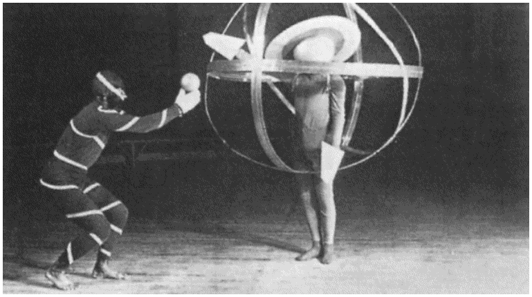 The first course in performance, ever given in an art school, was opened in 1921 at Bauhaus; headed by expressionist Lothar Schreyer. Students from all departments wearing geometric full- body masks participated in this Stage Workshop experiment âto explore issues related to the language of formâ13. Later Oskar Schlemmer, painter and choreographer took over its direction and developed his Stage Theory of Body Movements in Space 14 When the school moved to Dessau, Schlemmer organized a huge opening party called Metallic Festival. This event included distinctively designed invitations, performances in silver costumes and decorated rooms in metal. From photographs I guess Bauhaus parties gave a free rein to students to show their creativity and design invention, providing opportunities to produce remarkable invitations, posters, costumes and decorations. Besides that, Bauhaus introduced a new manner of stage and theatre practice, while at the same time graphic design pedagogy began to form and take shape.